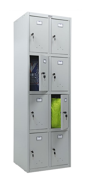 предназначены для хранения сменной одежды в производственных, спортивных и других помещениях, а также для организации камер хранения - комплектуются ключевыми замками Практик (2000 комбинаций) с возможностью смены цилиндра и мастер-ключом - комплектация PL - бесключевой замок Euro-locks A129 (под навесной замок) - возможность выбора шкафов различного способа сборки: при помощи заклепок (LE) (более жесткие, позволяет перевозить в собранном виде) или на зацепах (LS) (более удобные при сборке) - конструкции шкафов для раздевалок позволяют скрепляться их между собой - поставляются в разобранном виде