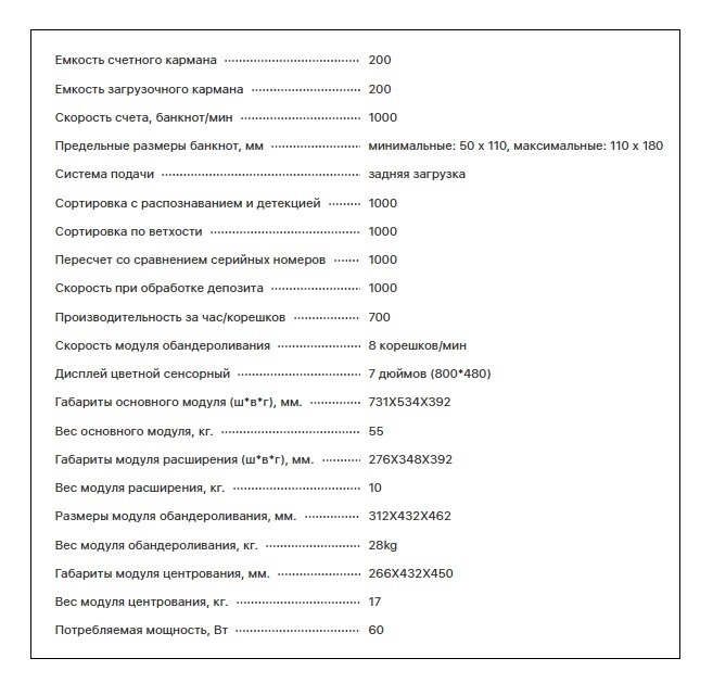 | Скорость счета, банкнот/мин | 1000 |