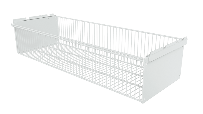 Корзина выдвижная Титан GS предназначена для установки на гардеробную систему. Изготовлена из проволоки, такой же как и сетчатые полки Титан GS. Учитывая крупноячеистую структуру, выдвижные корзины являются отличным вариантом для хранения одежды, поскольку обеспечивается отличная вентиляция вещей. Корзина выдерживает до 35 кг при ее равномерном распределении. Устанавливается на кронштейны полок Титан GS 435 (в комплект не входят). Покрытие: порошково-полимерное, гипоаллергенное и устойчивое к механическому воздействию. Цвет: белый