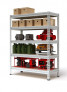 Среднегрузовой стеллаж Титан MС-Т предназначен для хранения грузов в складах, торговых и производственных помещениях. Стеллаж представляет собой сборно-разборную конструкцию. Для сборки стеллажа необходимо 4 стойки МС-Т 3000, 10 продольных балок МС-Т 182, 10 боковых балок МС-Т 75, 5 полок из фанеры толщиной 10 мм, 5 стяжек МС-Т 75. Стойки перфорированные, Г-образной формы, изготовлены из профилированной высококачественной стали. Ширина профиля стоек - 60х60 мм. Шаг перфорации стоек 50 мм. Балки крепятся к стойкам с помощью зацепов. Настилом для стеллажа Титан МС-Т служат листы высококачественной влагостойкой фанеры толщиной 10 мм. Нижняя полка секции должна находиться на расстоянии от пола не более 150 мм. Запрещается сборка нескольких секций стеллажа в единую линию. Конструкция стеллажа позволяет изменить положение полок без демонтажа всего стеллажа. Грузоподъемность на секцию стеллажа 2200 кг независимо от количества полок. Максимальная распределенная нагрузка на полку секции до 300 кг. Цвет - серый Ral 7035.