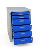 Тумбы Woker 06 комплектуется 6 выдвижными ящиками. Полезные размеры ящика (ШхГ) 459х612 мм (высота - 2 ящика - 65 мм, 4 ящика 135 мм). Ящики имеют противоскользящие коврики и набор наклеек с пиктограммами для маркировки содержимого ящика. Закрывается на цилиндрический замок, секретность замка 2000 комбинаций.