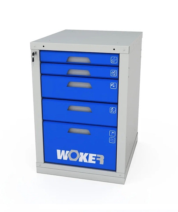 В комплектацию верстака входит: столешница Woker 1800, одна тумба Woker 02, одна тумба Woker 05, полка/стенка. Столешница выполнена из шлифованной березовой многослойной фанеры толщиной 30 мм. Снаружи фанера обработана влагостойким антисептиком цвета "красное дерево", что придает фанере повышенную влагостойкость и более темный цвет. Тумба Woker 02 имеет одну регулируемую по высоте полку (шаг 50 мм). Полка тумбы установлены на стальные салазки, которые позволяют выдвигать полку на себя на 70% для облегчения разгрузки/погрузки. Дверь тумбы закрывается на цилиндрический замок со стальной поворотной ручкой, секретность замка 2000 комбинаций. Открывание двери на 180 градусов. Тумба Woker 05 комплектуется 5 выдвижными ящиками (2 высотой - 135 мм, 2 высотой - 65 и 1 высотой - 275 мм). Полезный размер ящика: (ШхГ) 459х612 мм. В ящиках есть противоскользящие коврики и набор наклеек с пиктограммами для маркировки содержимого. Полка/стенка верстака выполнена из стального листа толщиной 1 мм.
